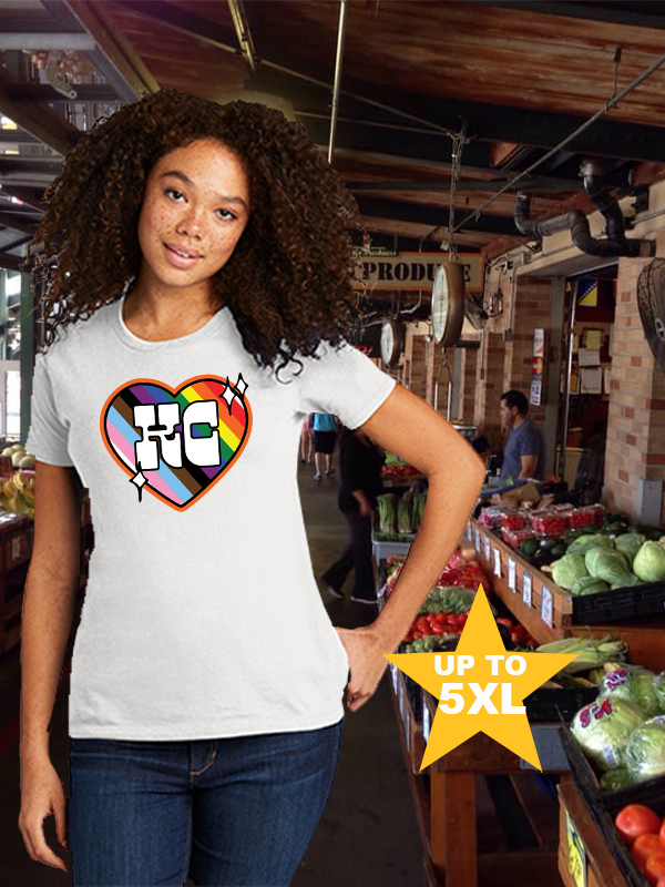 Isn't this a great logo, Kansas City Pride, Official White T-shirt in a more traditional feminine cut, Sizes XS-through 3XL 100% Cotton