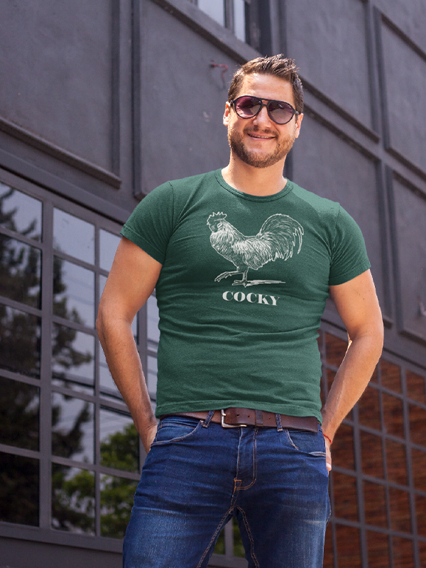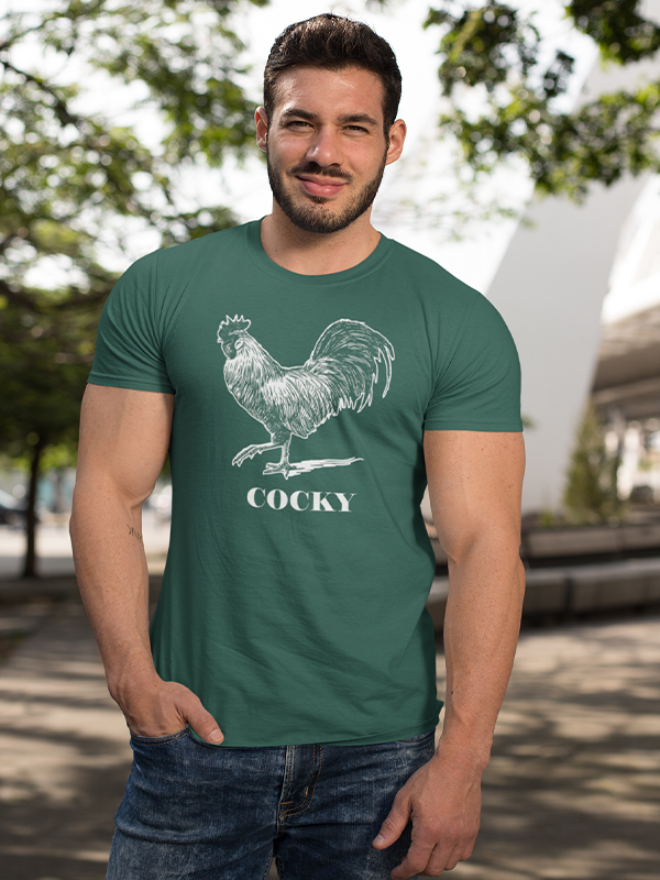 Cocky, We all know who this shirt is perfect for. It might even be you. Forest Green colored 100% cotton, pre-shrunk T-shirt. S-5XL