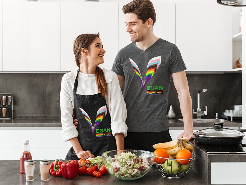 I am vegan, and very proud of it, so join me with this choice. Even if you just go meatless one day a week. This is a one size apron. Aprons are individually made and can take up to 3-4 weeks for delivery,