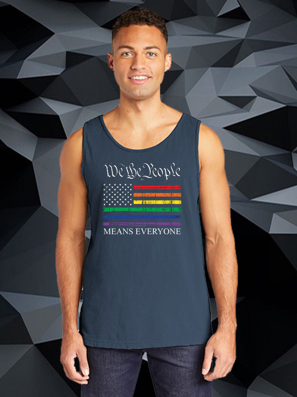We the People, means everyone. This is a new version of the shirt that started it all in 1998. We are so proud of our designs, I hope you like it also, 100% Cotton Navy Blue Tank Top S-4XL