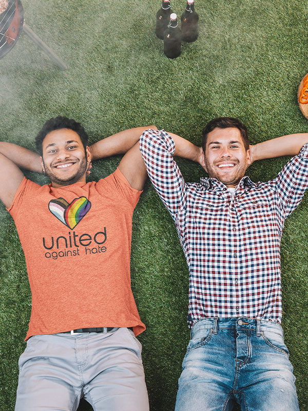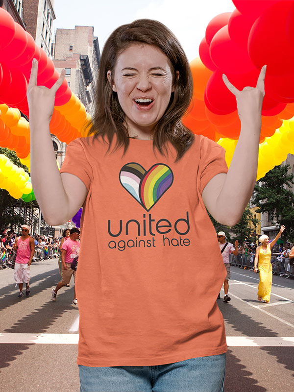 United Against Hate, Join Phoenix Pride to wipe out the missinformation us, and our family. Printed with the Phoenix Pride logo and year on the back. Heather Orange, sizes Small through 4XLarge. This t-shirt is everything you've dreamed of and more. It feels soft and lightweight, with the right amount of stretch. It's comfortable and flattering for all.