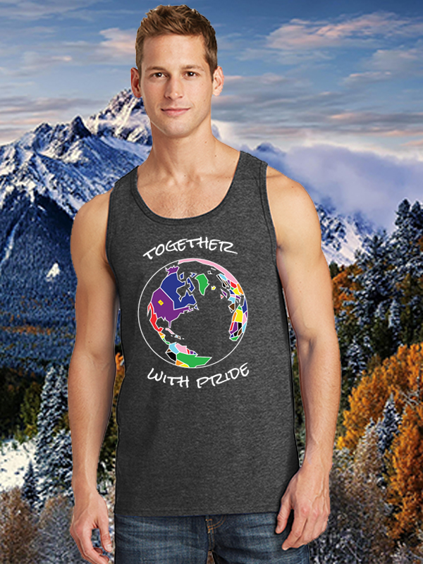 Together with Pride, Official Denver 2022 design. Dark Heather Grey Tank Top, Printed with the official Denver 2022 logo, and with Denver Pride 2022 on the back. 50/50 Cotton/Poly. Great fit, order the size you usually wear. Adult sizes S-3XL