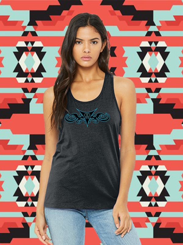 Traditionally a more feminine cut, This black racerback tank top, is 60% cotton and 40% Polyester, Very soft, comfortable and classic fit. Printed with the interlocking symbols for women, This is a great Tribal design.