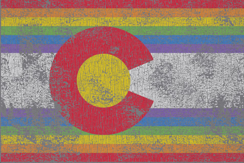 The Colorado Flag done with a rainbow flair, Athletic Grey Cotton/ Polyester Hoodie . Sizes Medium-3XL. Nice comfortable fit. 8-ounce, 50/50 cotton/poly. Double-needle stitching at waistband and cuffs. Double-lined hood with dyed-to-match drawcord