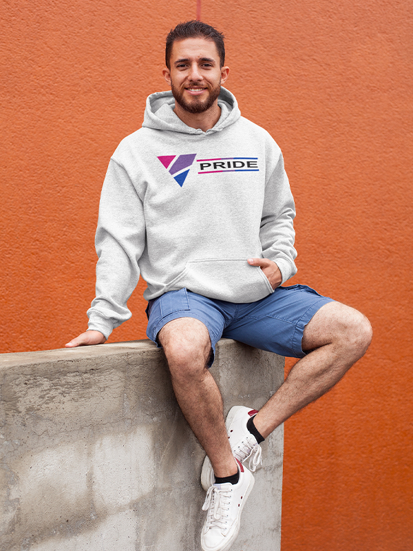 We have taken the Bi-sexual flag colors and did a bit of art, in the form of a triangle, It is available on this 100% Cotton White Unisex T-shirt. Sizes S-4XL.