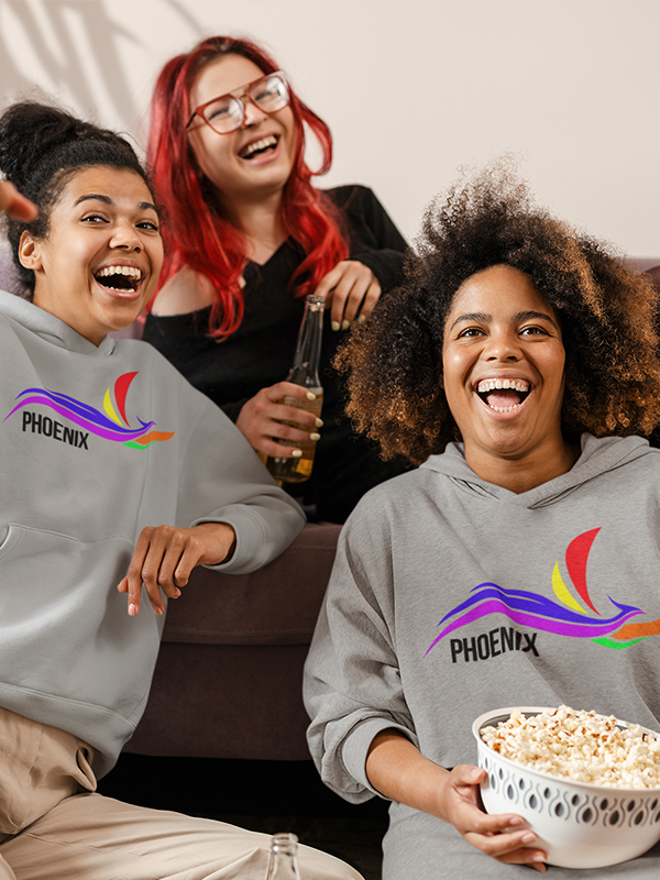Keep it Simple, and warm, 8.5 ounce fabric, Official 2022 Phoenix Pride Theme White Hoodie We have this design up to size 5XL 50/50 cotton/poly