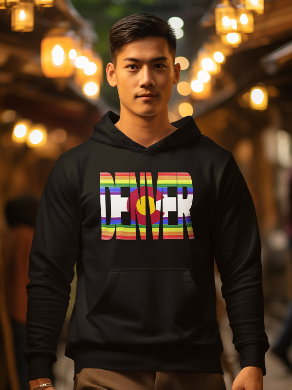Denve CO Rainbow Flag Black Unisex Hoodie