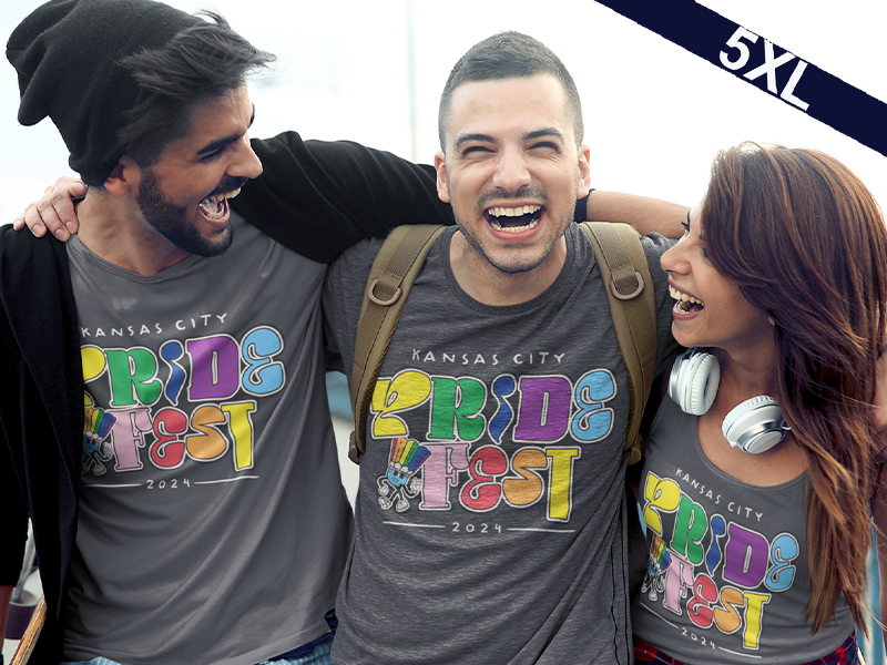 As always the Kansas City Pridefest t-shirt does not disappoint, This is a beautiful full color front print, on a Unisex fit Dark Heather Grey. Sizes Small through 5XL. You've now found the staple t-shirt of your wardrobe. It's made of 65% Polyester and 35% ring-spun cotton and is soft and comfy. The double stitching on the neckline and sleeves add more durability to what is sure to be a favorite!