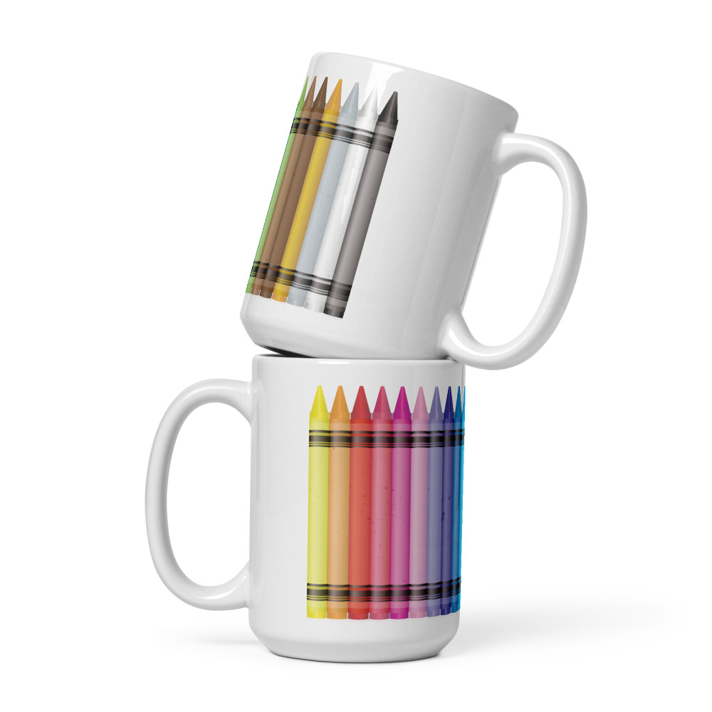 Rainbow Crayons White glossy mug