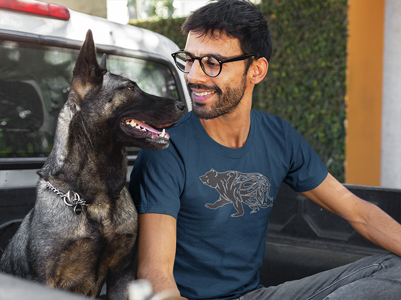 Tribal Tattoo Bear Design, Navy Blue T-shirt